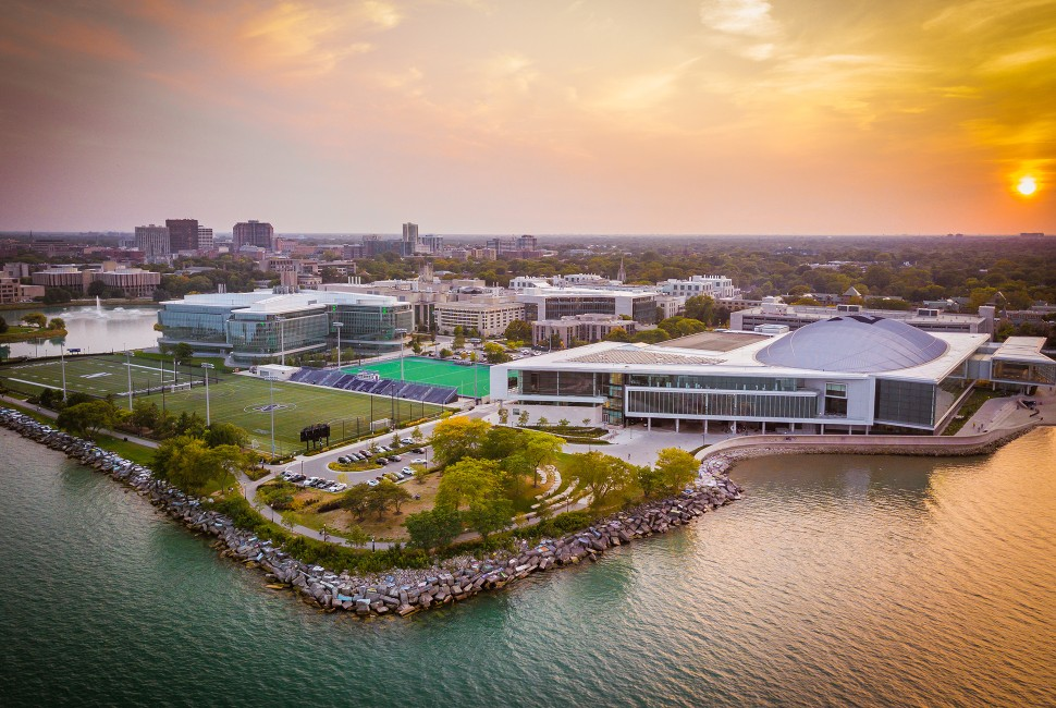 The Lakefill. The campus sits directly on the shores of Lake Michigan. On a clear day, students sit on the painted rocks looking out at the endless blue water with the Chicago skyline in the distance. It is one of the best views in American academia.]